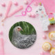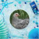 Auf dieser Papierplatte befindet sich eine silberne Wyandotte-Henne, die mit hohen Gräsern im Hintergrund posiert. Ideal für Party und Picknicks!