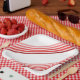 Papierplatte - Schatten roter, diagonaler Streifen Pappteller