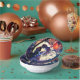 Ein lebendiges Set von Papierschalen mit farbigem Glas, das ein Paar und Mond ausstrahlt.