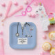 Einzigartige Teller der Medizinstudenten mit Klinikscheuern, Stethoskop und Schweizerischen Armeemessern. Um eine persönliche Note zu erhalten, editieren Sie den Text, um den Namen des Arztes hinzuzufügen.
