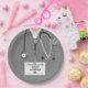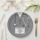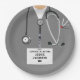 Kreative Party-Teller für Medizinstudenten mit Klinikscheuchen, Stethoskop und lustigem Schweizer Armeemesser. Bearbeiten Sie den Text, um den Namen des Arztes hinzuzufügen.
