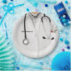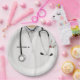 Einzigartiges medizinisches Design mit Labrador-Mantel, Stethoskop und Schweizerischem Armeemesser. Bearbeiten Sie den Text, um den Namen des Arztes hinzuzufügen.