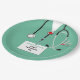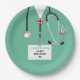 Einzigartige Teller der Medizinstudenten mit kreativen Klinikabfällen, Stethoskop und lustigem Schweizer Armeemesser. Bearbeiten Sie den Text, um den Namen des Arztes hinzuzufügen.