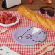 Teller der Creative Medical School mit Lavendel Klinik, Stethoskop und lustigem Schweizer Armeemesser. Bearbeiten Sie den Text, um den Namen des Arztes hinzuzufügen.