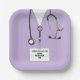 Einzigartige Teller aus dem medizinischen Party mit kreativen Lavendel-Klinikscheren, Stethoskop und Schweizer Armeemesser. Bearbeiten Sie den Text, um den Namen des Arztes hinzuzufügen.