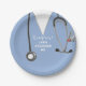 Teller der Creative Medical School Abitur mit Klinikabfällen, Stethoskop und lustigem Schweizer Armeemesser. So personalisieren Sie Text bearbeiten, um den Namen des Arztes.