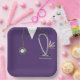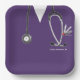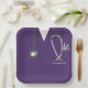 Einzigartige Teller für das Party an der Krankenschwester mit lila Peelings, Stethoskop und lustigem Schweizer Armeemesserdesign. Bearbeiten Sie Text, um den Namen der Krankenschwester hinzuzufügen.