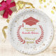 Papier Teller für das spezielle High School oder Uni-Abschluss Party mit personalisiertem Text. Features Bild eines roten Grades und Lorbeerkranz Akzent mit Imitaten goldenen Konfetti. Siehe passende Servietten und andere Farbgruppen auch in diesem Design verfügbar