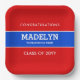 Benutzerdefinierte Teller für rotes und blaues Abschluss-Papier.