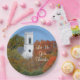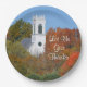 Auf dieser Papiertafel befindet sich ein neuer Kirchturm aus England, der über den Bäumen ragt, die in ihrem Herbstkleid verziert sind. Dieser Teller kann am Erntedank oder an jedem Tag des Jahres benutzt werden, an dem Sie besonders dankbar sind.