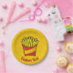 Cartoon Illustration von kleinen Pommes frites. Junk Food Kontur Icons Gelbe Muster Hintergrund. Eigener Text.