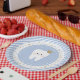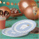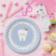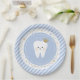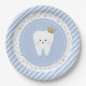Dekorationen aus dem First Tooth Party. Baby blaue Papiertüte mit niedlichem Zahn und Streifen. Besuchen Sie den Shop, um alle Kollektionen von First Tooth zu sehen.