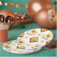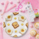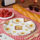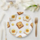 Eine Papiertafel mit gebratenen Eiern und Toast-Kawaii-Elementen.