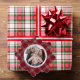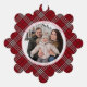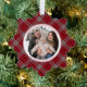 Rustikale Weihnachtsschmuckkarte mit rotem Flanellmuster, um mit Ihrem Foto zu personalisieren. Bearbeiten Sie Ihre Nachricht auf der Rückseite.