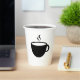 8 oz weiße Papiertasse mit einer Tasse heißen Kaffee darauf