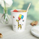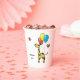 Papiertasse mit einer niedlichen kleinen Giraffe und Vögeln. Sie können den Namen, den Schriftart, die Größe und die Platzierung anpassen, der Text ist vollständig editierbar. Auch können Sie die Bildgröße ändern.