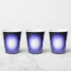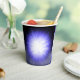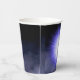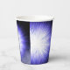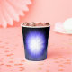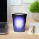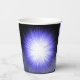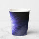 Papiertasse mit schwarzem Smokey-Hintergrund mit lila-weißem Lichtbrand