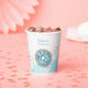 Papier Tasse zum ersten Geburtstag, mit einer schönen Aquarellbilder von süßen und köstlichen Donuts dekoriert.