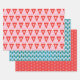 Ein stilvolles und modernes Urlaubsmuster mit Retro, Mitte des Jahrhunderts modern inspirierten Dreiecken, Sternen, Schneeflocken und Blume. Diese Designs könnten für Hanukkah, Weihnachten oder das ganze Jahr verwendet werden. Die Farben sind rot, blau, grün, rosa und weiß.