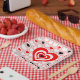 Papiertüte aus rotem, weißem, schwarzem Valentinhe Pappteller