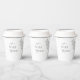 Papier-Cups für eine Brautdusche in einem sanften, eleganten Stil mit einer bezaubernden grafischen Abbildung der Lilie des Tales.
