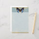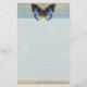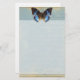 Ein schönes Shabby Chicbild eines blauen Schmetterlinges, auf einem blauen Hintergrund mit Vintagem französischem Skript. ©Wickedlylovely