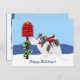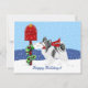 Weihnachten mit Papillon. Feiern Sie die Jahreszeit mit diesem Papillon, der seine Urlaubspost mit seinem roten Strick-Schal in die Mailbox schickt und durch den Schnee schlendert