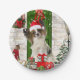 Papillon Dog Weihnachten sitzend draußen geschmückt Zuhause mit Weihnachtskranz, Weihnachtsbaum ist eine perfekte Weihnachtsgeschenkidee für Hundefreunde.