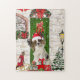 Papillon Dog Weihnachten sitzend draußen geschmückt Zuhause mit Weihnachtskranz, Weihnachtsbaum ist eine perfekte Weihnachtsgeschenkidee für Hundefreunde.