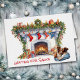 An der Vorderseite dieser Weihnachtsgrüßkarte steht ein hübscher kleiner Papillon-Hund, der auf einer blauen Decke vor einem dekorierten Kamin liegt, der für den Weihnachtsmann erwartungsgemäß gewartet ist. Im roten Text unten steht "Gewartet für den Weihnachtsmann". Der Text ist anpassbar, wie auch der gesamte Insider-Text, sodass Sie ihn sagen lassen können, was Sie wollen. Niedlich! Sehen Sie mehr Papillon-Bilder, zusammen mit Dutzenden anderer Hundezuchtprodukte, im Dog Village.