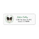 Ein Porträt eines schönen schwarz-weißen Papillon-Hundes in einem hellgrünen Blatt-Wasserfarben-Eukalyptus-Kranz ist das Merkmal auf der linken Seite dieser Rücksendeetiketten. Wählen Sie "Dieses Design bearbeiten", um den grünen und schwarzen Text in Ihren eigenen zu ändern.