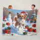 Papillon Hund läuft im Schnee mit Weihnachtshut Fleecedecke