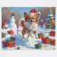 Ein fröhlicher Papillon läuft durch die schneebedeckte Winterlandschaft und trägt einen festlichen roten Weihnachtshut. Mit seinen schmetterlingsartigen Ohren und seiner lebhaften Persönlichkeit, erweckt dieses Design den spielerischen Charme der Rasse und zelebriert gleichzeitig die Freude und den Geist der Urlaubssaison. Ein herzlicher und festlicher Wintermoment.