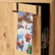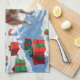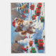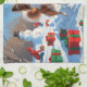 Papillon Hund läuft im Schnee mit Weihnachtshut Geschirrtuch