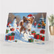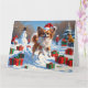 Papillon Hund läuft im Schnee mit Weihnachtshut Karte