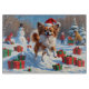 Ein fröhlicher Papillon läuft durch die schneebedeckte Winterlandschaft und trägt einen festlichen roten Weihnachtshut. Mit seinen schmetterlingsartigen Ohren und seiner lebhaften Persönlichkeit, erweckt dieses Design den spielerischen Charme der Rasse und zelebriert gleichzeitig die Freude und den Geist der Urlaubssaison. Ein herzlicher und festlicher Wintermoment.