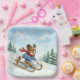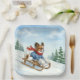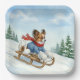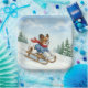 Papillon Dog in Christmas Sweater and Scarf Sledding Down the Hill in the Snow