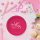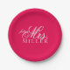 PapierTeller für Ihr Party oder Ereignis mit zukünftiger Frau Text und letzter Name. Wählen Sie alle mögliche Hintergrund-Schriftartfarben, die Sie mögen. Nachname wie in zweizeiligem gezeigt. Benutzen Sie Singleraum oder verringern Sie Textgröße, um Namen innerhalb der Textsaferegion zu behalten.