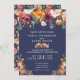 Die Hochzeitseinladung passt zu unserer Paprika Burgund Floral-Kollektion, die mit einem Blumentropfen von Aquarellen aus prächtiger Bordeaux-, Gold-, Korallen-, Rost- und Blattpalette besticht, die die Einzelheiten der Hochzeitseinladung mit marinebasischem Hintergrund umrahmt. Der gesamte Text ist vollständig anpassbar.