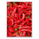 Das Bild von vielen langen, heiß roten Chili Paprikaschoten mit grünen Stielen im sonnigen Sommertagslicht. Digitales Foto.