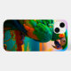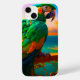 Dieser Telefonkoffer hat einen Papagei darauf.