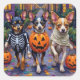 Päpstliche Hunde Trick-oder-Treating Halloween-Kos Quadratischer Aufkleber