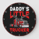 Diese charmante Wanduhr ist eine perfekte Hommage an die Bindung eines Kindes mit einem fahrenden Papa. In der Mitte befindet sich ein lebendiger roter Sattelwagen, das Set vor einem schwarzen Hintergrund mit einem kräftigen roten Rand. Der Text "DADDY'S LITTLE TRUCKER" wird in einer Kombination aus weißen und rot bedrückten Schriftart hervorgehoben dargestellt, was ihn zu einem idealen Dekorationsstück für ein Kinderzimmer oder einen Familienraum macht, der das LKW-Leben feiert.