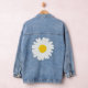 Add a touch of bold softness to your style with this denim jacket featuring a large daisy on the back. Zum Symbol der Vereinfachung und Joy, the oversized floral design brings a fresh and carefree vibe — perfekt for those who love to bloom wherever they go.