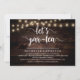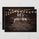 Moderne Kalligrafie Bridal Duscheinladung Karte (Let's Par-tea), in rustikalen dunklen Holz Saitenleuchten Design themed. Die Einladungs-Karte lädt Sie ein. Fügen Sie Ihre Brautparty-Details in passender Formulierung hinzu.