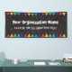 Farbiges Banner für Ihre Parade, Ihr Party oder Ihre Feier mit eigenem Text. Die farbenfrohen Dreieck-Wesen oben und unten sowie Konfetti und Sterne, die auf einem schwarzen Hintergrund rund um den Text verstreut sind, bilden eine festliche Aussage. Bearbeiten Sie die Textzeilen für Ihr Ereignis.