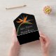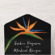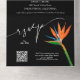Eleganter tropischer Vogel paradiesischer Blume auf schwarzem Hintergrund Akzent dieser dreiseitigen Hochzeitseinladungen mit Ihren Details in schicken Schriften in Sektionen auf der Vorder- und Rückseite und einem benutzerdefinierten QR Code für Gäste zu scannen auf Ihrer Website UAWG. PASSENDE Artikel in unserem Geschäft.