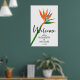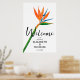 Ein tropischer Vogel des Paradieses Aquarell-Blume mit Willkommen und Ihre Hochzeitsdetails in schicken Buchstaben Akzent dieses Poster, ändern sich in jeder Größe. Bestellen Sie als INSTANT DOWNLOAD oder PRINTED plus MATCHING Artikel und mehr Farben in unserer Sammlung.