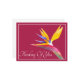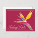 Atemberaubendes nah-up Foto eines atemberaubenden Bird Of Paradise Blume vor einem rosa Hintergrund. Die Blume deckt die Vorderseite dieser Postkarte ab, die als Dankeschön-Karte, Geburtstagskarte oder jede andere Karte Ihrer Wahl verwendet werden kann. Passen Sie es mit Ihrem Text und/oder Bildern an, um es zu einem einzigartigen Bild zu machen!