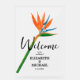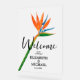 Ein tropischer Vogel des Paradieses Aquarell-Blume mit Willkommen und Ihre Hochzeitsdetails in schicken Buchstaben Akzent dieses ACRYLIC Zeichen, ändern Sie zu jeder Größe. PASSENDE Artikel und mehr Farben in unserer Sammlung.